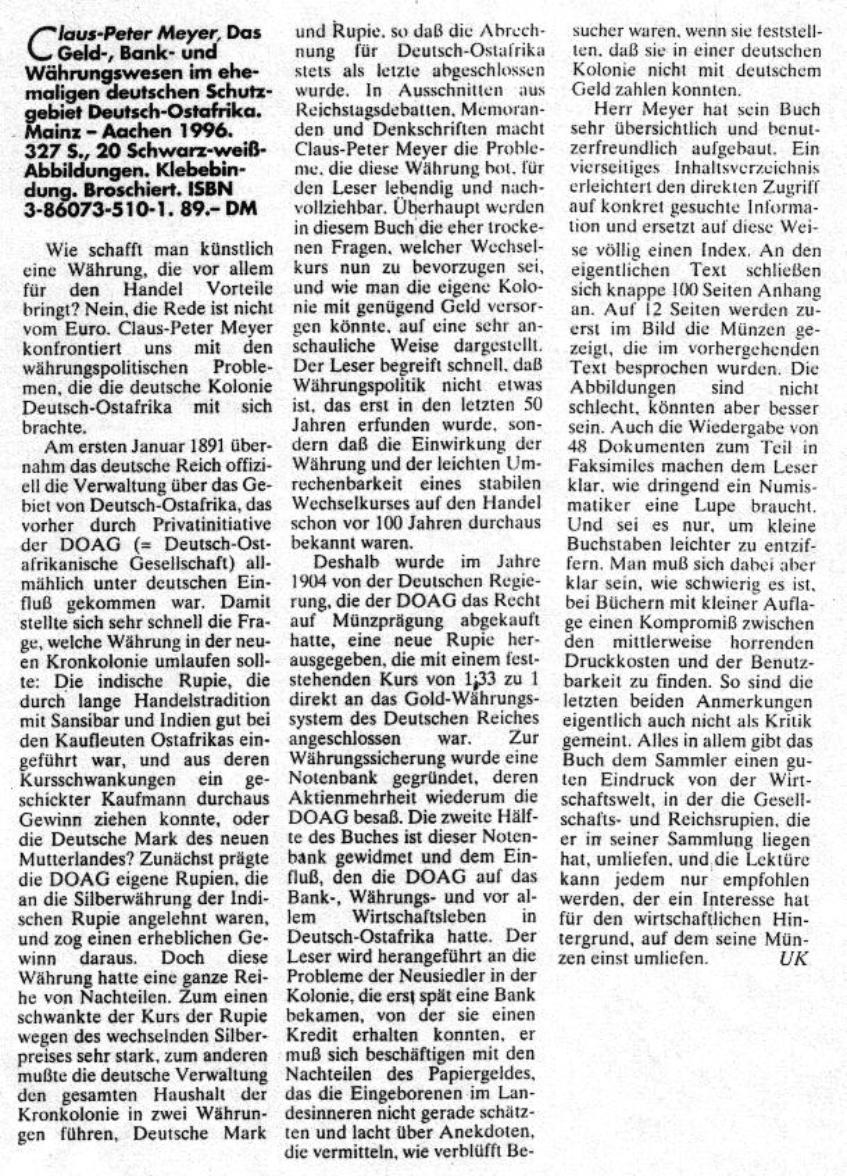 Das Geld-, Bank- und Währungswesen im ehemaligen deutschen Schutzgebiet Deutsch-Ostafrika